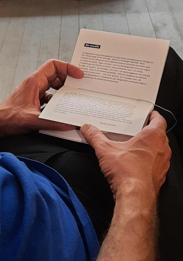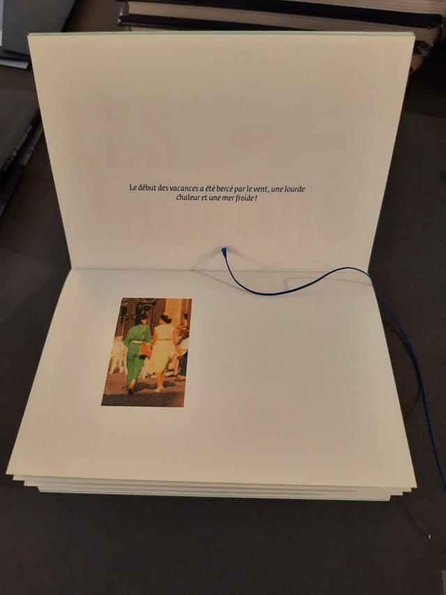 Reliure artisanale en fil de coton bleu.